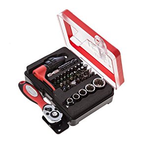 - Hand ratchet screwdriver for use with 1/4" hex insert bits when screwing into awkward places.