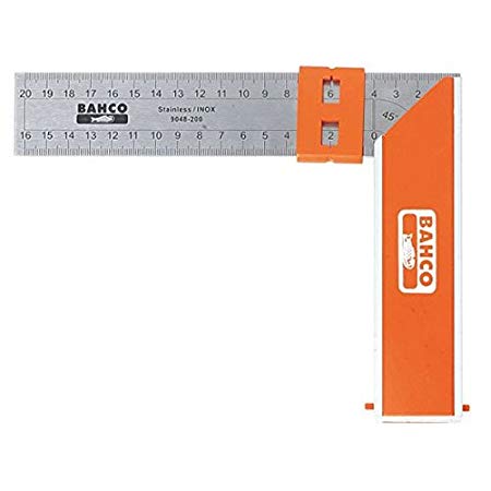 Bahco aluminium block and steel try square in the traditional shape, with 90 degree and 45 degree angle guides. Removable indicator on blade makes it easier to sign the exact measurement on the workpiece. Stainless steel blade with 0.1/100 mm accuracy.