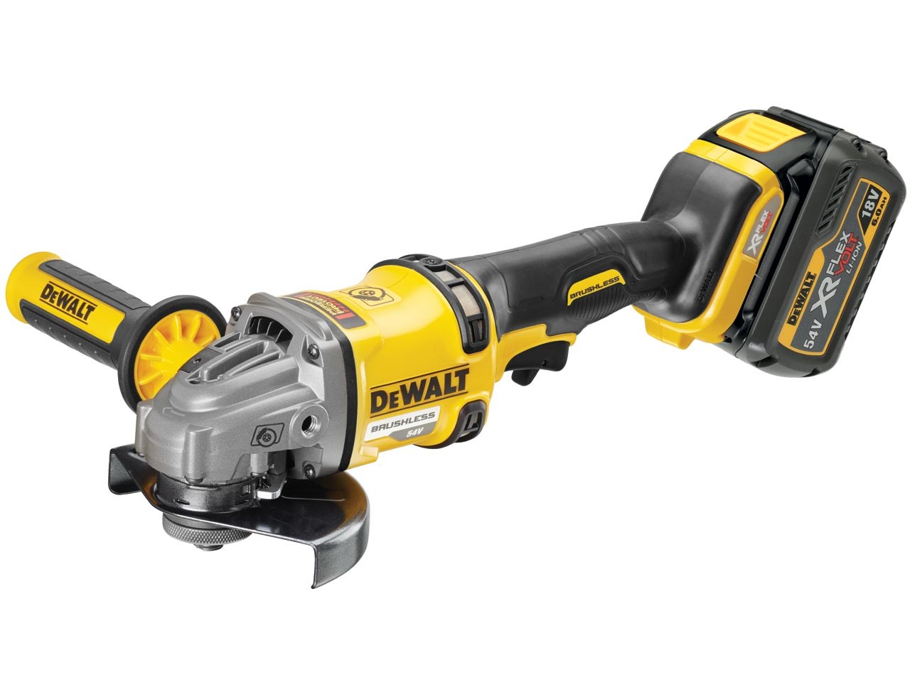 The Dewalt DCG414 is a powerful XR Lithium-ion premium angle grinder fitted with a powerful, maintenance free brushless motor for maximum power and durability. Powered by the 18/54V XR FLEXVOLT battery. This cordless, heavy duty construction angle grinder has all the accuracy, capacity and power of corded with the freedom of cordless.