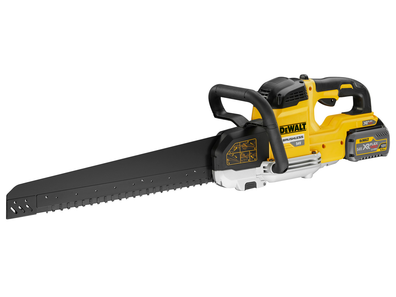 The Dewalt DCS397 is a powerful XR Lithium-ion premium alligator saw fitted with a powerful, maintenance free brushless motor for maximum power and durability. Powered by the 18/54V XR FLEXVOLT battery. This cordless, heavy duty construction alligator saw has all the accuracy, capacity and power of corded with the freedom of cordless.