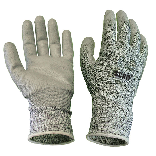 These Scan Grey Polyurethane Coated Cut 5 Liner Gloves are highly cut, tear and puncture resistant, with excellent grip and flexibility. Their palms and fingers are coated with Polyurethane and have a knitted, seamless liner. The gloves are lighweight, at only 13g per glove.