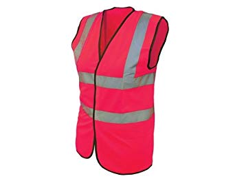 High visibility pink waistcoat with panels that reflect light to maximise visibility particularly during the hours of darkness.