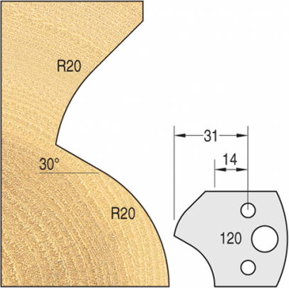 A range of 40mm x 4mm knives for use with Trend multi profile system cutter blocks. Knives are tool steel grade. All knives and limitors are sold as pairs. - Suitable for jointing, rebating and profiling of softwood and hardwood. - Knives are 40mm high x 4mm thick. - Wooden profiles are shown actual size. - Knife drawings are shown 35% of actual size and show back of knife. Dimensions are in mm. - 150 profiles are available.