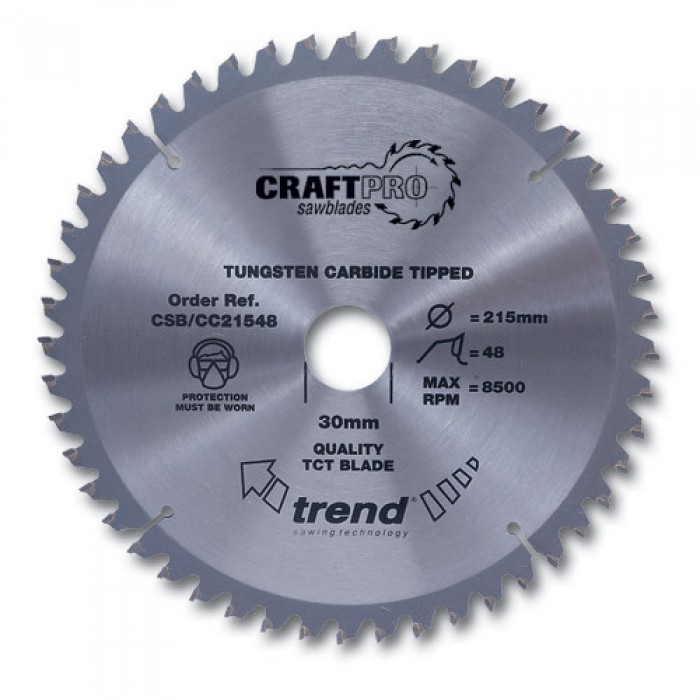 For crosscutting applications on mitre and radial arm saws. Blades have a negative hook angle, to minimise 'pick up' and 'snatching'.
