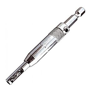 Lip and spur 5mm HSS drill bit guide, which when used with a template will allow 5mm diameter blind holes to be drilled for 5mm Shelf Supports. Guide diameter is 9.5mm (3/8").
