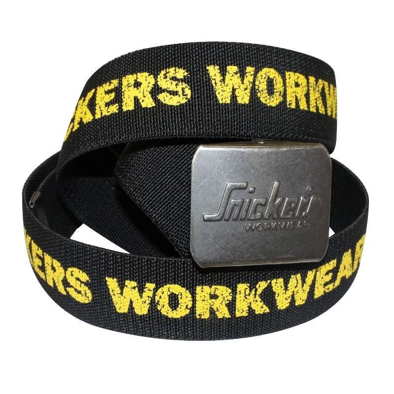 Elastic belt with a distinctive antique silver finish buckle and Snickers Workwear print. Designed for on-the-job comfort with a contemporary flair.