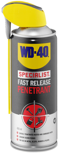 A Fast Release Penetrant specifically formulated for the frustrating tasks of loosening stuck, corroded or rusted components and mechanisms. Our cleverly formulated Penetrant has an extremely low surface tension, meaning it can penetrate rust, seams and tightly bonded threads to easily saturate and lubricate seized fixings. The Smart Straw and 360° valve allows our Fast Release Penetrant to be used precisely at all angles, and the capillary action of the formula means can reach incredibly tight and hard to reach spots. Highly water resistant, it can also displace moisture that may be disrupting smooth movement, and can be used as a preventative spray to prohibit the build up of rust and corrosion in the future. Use in temperatures ranging from -20°C to +90°C, on materials such as metal, rubber, plastics, alloys and most paints.