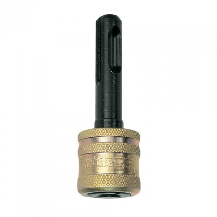 The Quick Chuck is fitted into a standard 3/8" key or keyless chuck. Quick Change hex shank attachments or any direct drive 1/4" hex bits can then 'snap' in effortlessly. Six flats on the shank ensure precise location in the chuck. A spring-loaded outer sleevemakes it easy to remove attachments.
